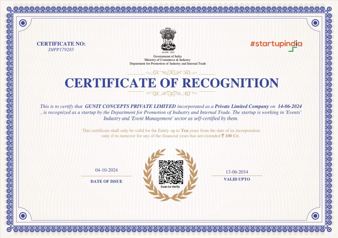 G-Unit Concepts is proud to be recognized by the DPIIT (Department for Promotion of Industry and Internal Trade)
